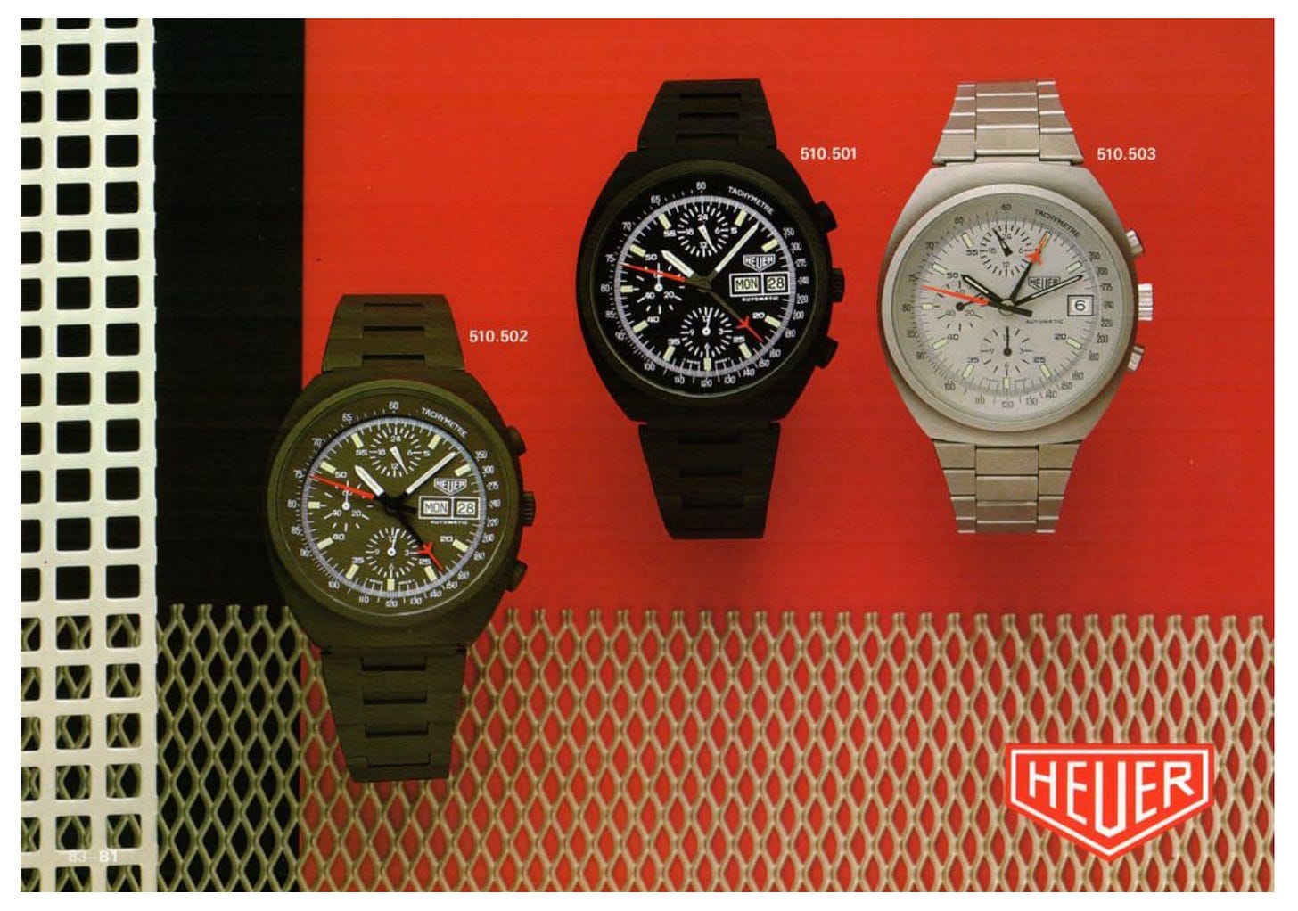 Lemania got to install its 5100 movement in some Heuer cases (generally references that start “510”) but other than that Piaget-era Heuer watches are characterized by predominantly quartz lines developed by a company called Roventa-Henex.