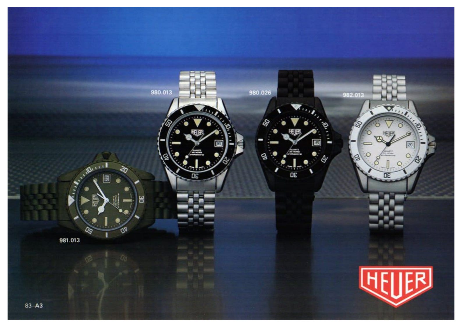 They make their final appearance, now branded with the TAG Heuer logo, in the 1988 catalogue. Unloved and quickly forgotten.