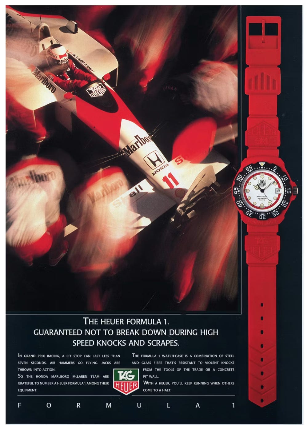 Then there are the pop culture overlays. The only Heuer watches ever to feature in a Bond movie are from the Piaget-era. The Formula 1 – the most popular icon of 80s/90s TAG Heuer – likely begins as a Piaget-era brief.
